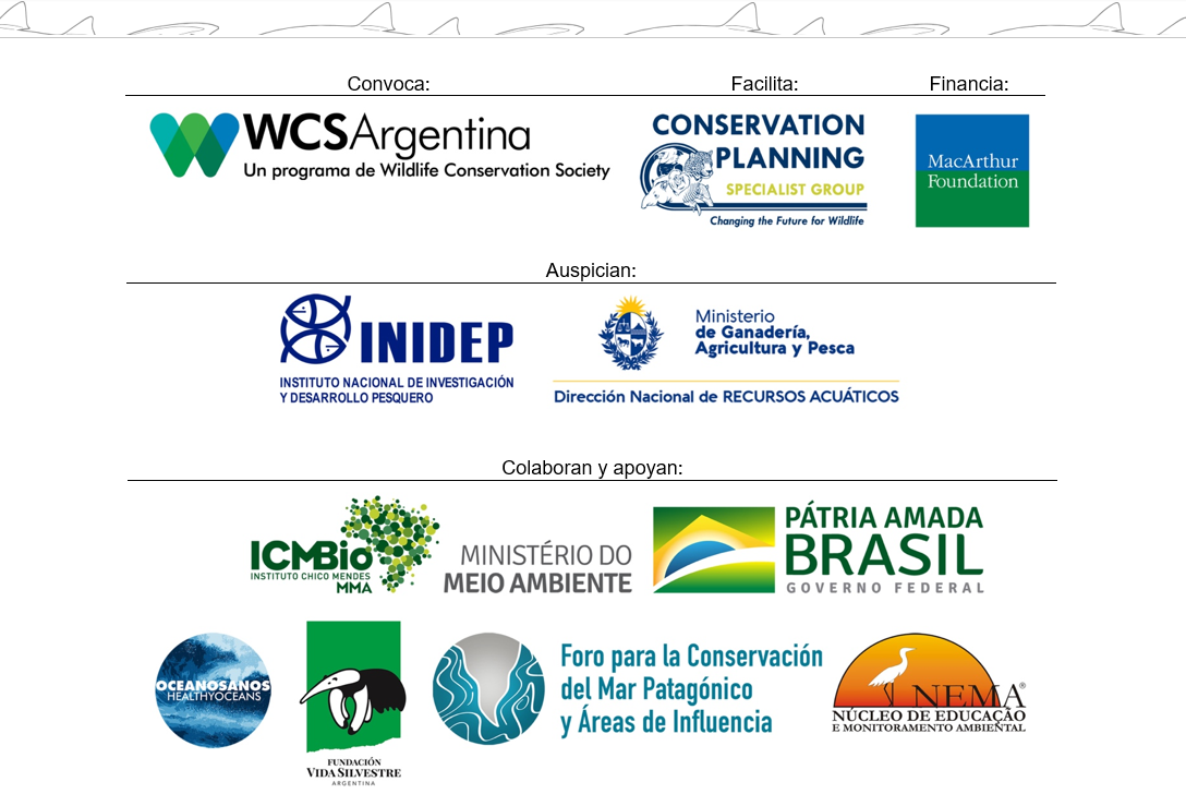 El taller fue organizado y convocado por WCS Argentina. Contó con el auspicio del Instituto Nacional de Investigación y Desarrollo Pesquero de Argentina y la Dirección Nacional de Recursos Acuáticos perteneciente al Ministerio de Agricultura, Ganadería y Pesca de Uruguay. Colaboraron y apoyaron el Instituto Chico Mendes de Conservação da Biodiversidade (ICMBio) -perteneciente al Ministerio de Medio Ambiente del Gobierno Federal de Brasil-, la Fundación Vida Silvestre Argentina, el Foro para la Conservación del Mar Patagónico, Océanos Sanos y el Núcleo de Educacao e Monitoramento Ambiental. La dinámica de la reunión fue facilitada por el Grupo de Especialistas en Planificación para la Conservación de la Unión Internacional para la Conservación de la Naturaleza (UICN). El evento fue posible gracias al financiamiento de la Fundación Mac Arthur.