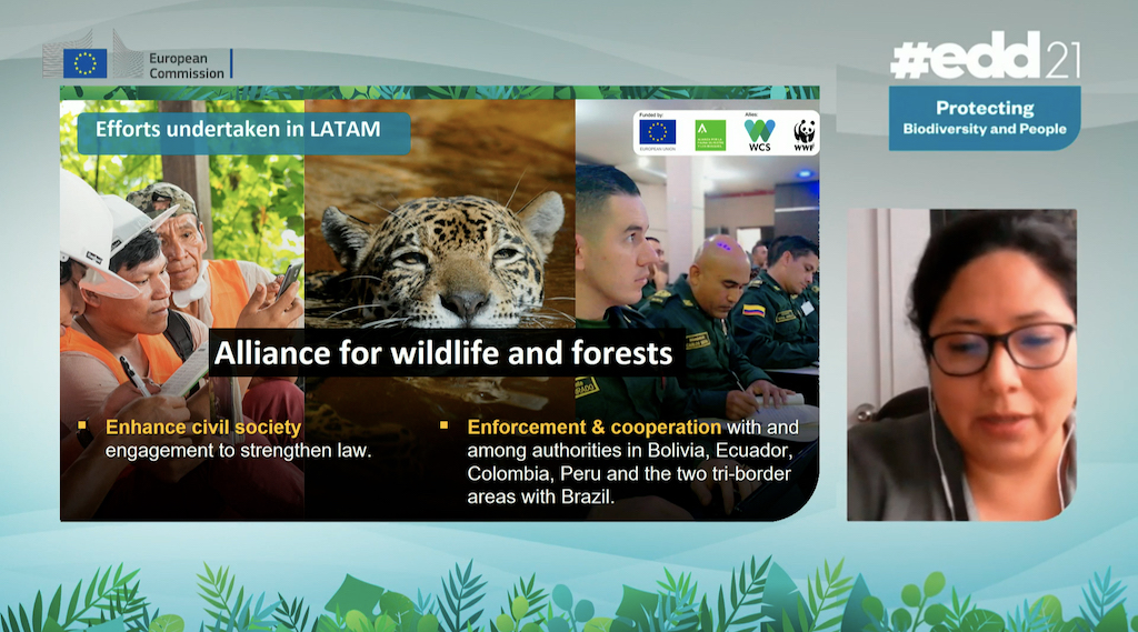 En cuanto a la Amazonía, Yovana Murillo, Directora de la acción regional "Alianza por la Fauna Silvestre y los Bosques", destacó que en los países andinos-amazónicos se busca hacer frente al tráfico de fauna silvestre y madera a través del compromiso de la sociedad civil y la cooperación con y entre las autoridades de Bolivia, Colombia, Ecuador, Perú y las zonas de tri-frontera con Brasil. Algunos de los principales desafíos identificados a la fecha incluyen: la insuficiente atención de los delitos contra la vida silvestre como un crimen transnacional, la falta de datos disponibles y accesibles, pocos mecanismos para el intercambio de información entre autoridades y países, así como el bajo número de enjuiciamientos de miembros de redes criminales de tráfico de vida silvestre, y la poca inversión en acciones que resulten en un cambio de comportamiento de los consumidores.
